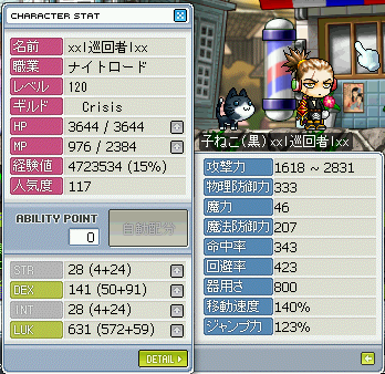 というわけで。4次転職時点でのステータスはこのようになりました。