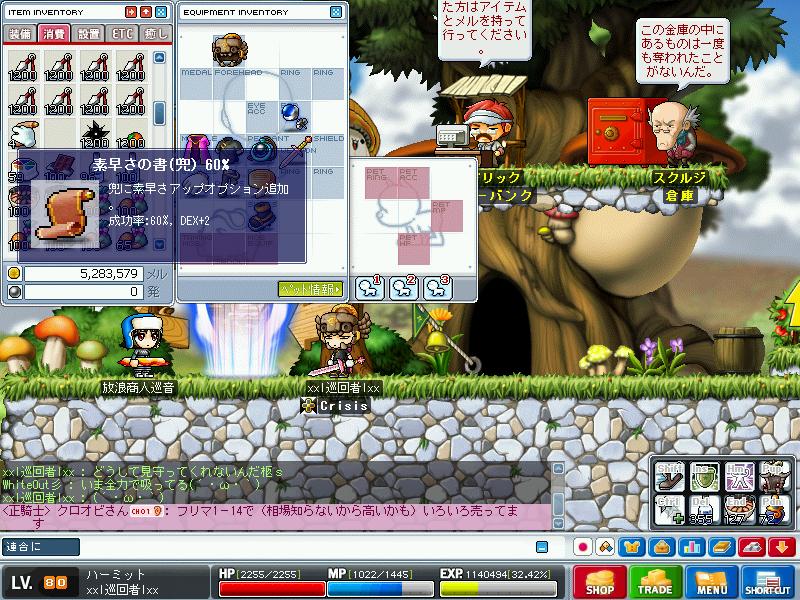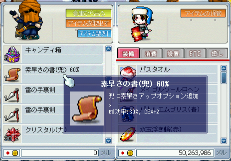 本日の戦果:雷シュリ1、素早さ兜60%1、命中片手鈍器100%1