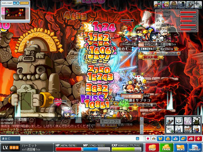2段階半分あたりまで行った頃、残る面子は私含めて6人、きっかり1PT分