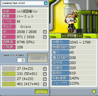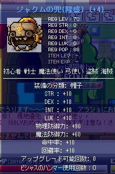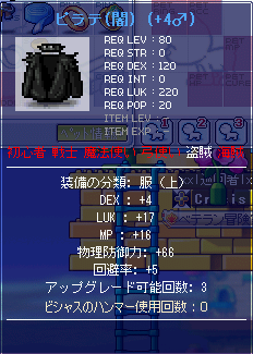 こっちは残りを100%で固めてLUK20の暫定装備に